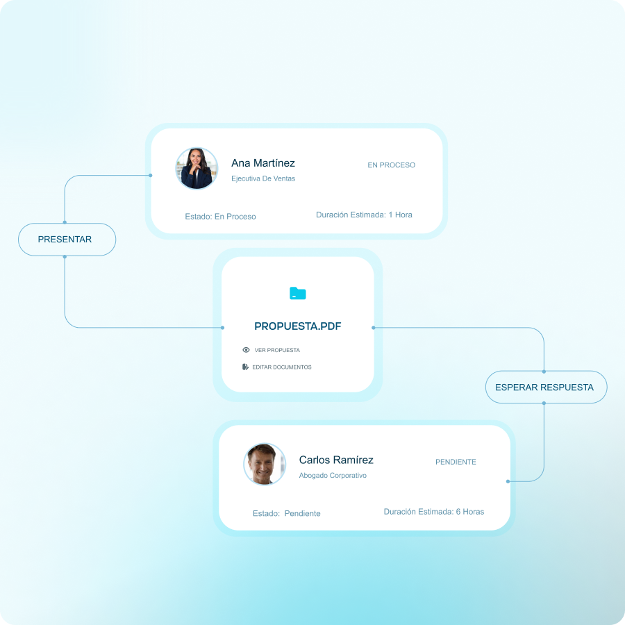 Controla contratos y documentos, asegurando aprobaciones y permisos correctamente.