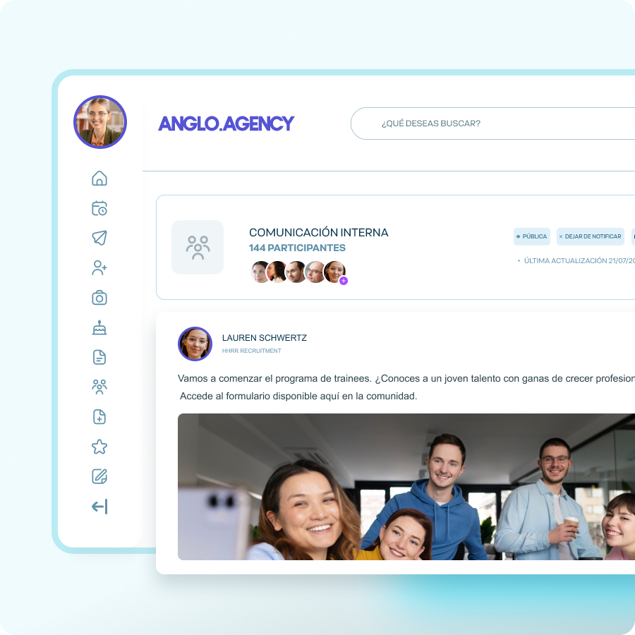 Conecta tu equipo mediante mensajes, perfiles y colaboración en proyectos interactivos.